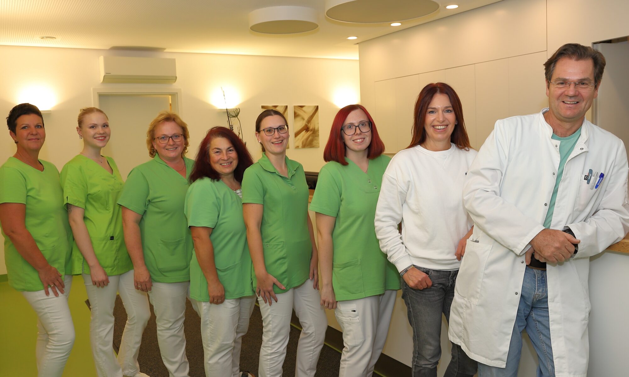Nicole Geier (v.l.), Jana Kellnberger, Monika Maier, Lydia Diedrich, Sandra Hutterer, Carina Zitzelsberger, Beate Strohmaier, Dr. med. Christian Strohmaier